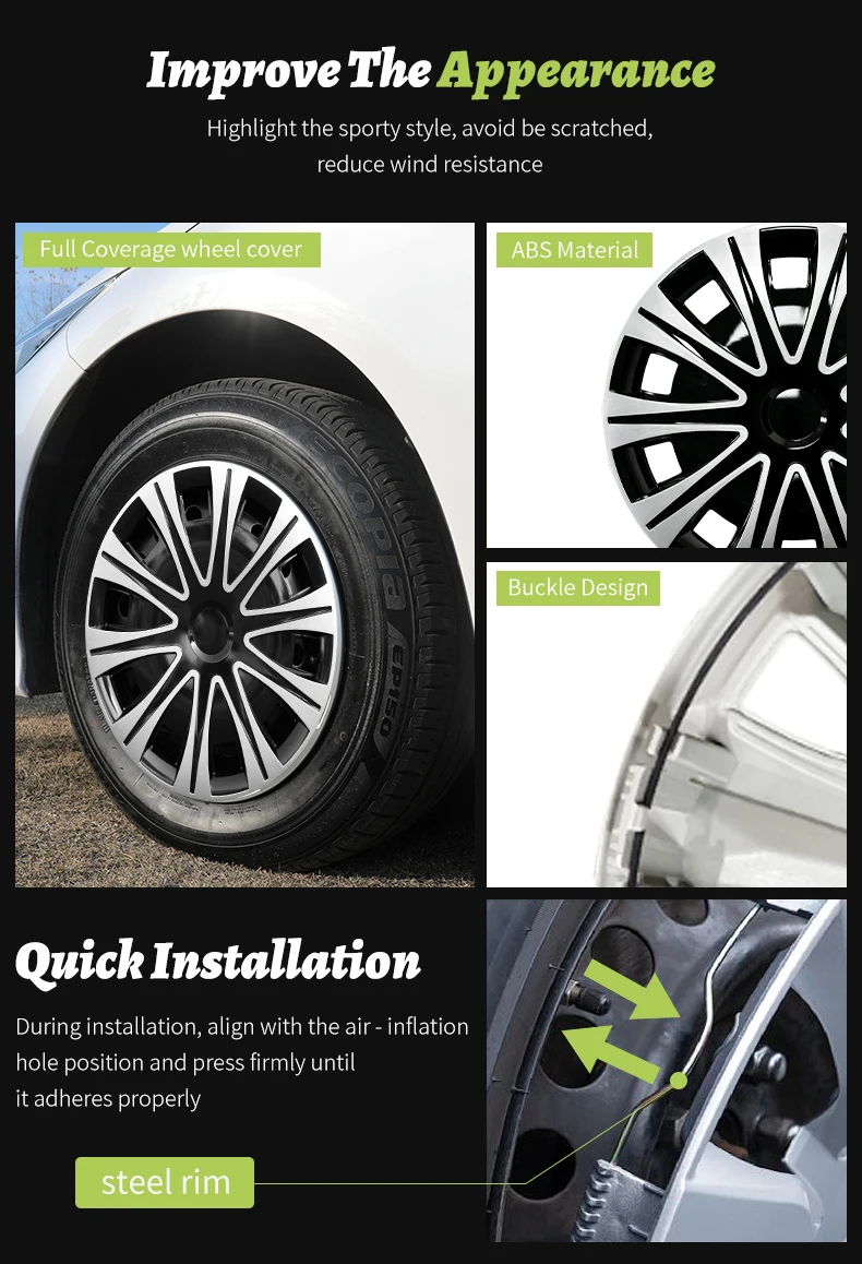 17 Inch Sunlight Style Wheel Covers Plastic Hubcaps For Automobile Vehicle Full Coverage 4PCS/Set Wheel Cap Accessories