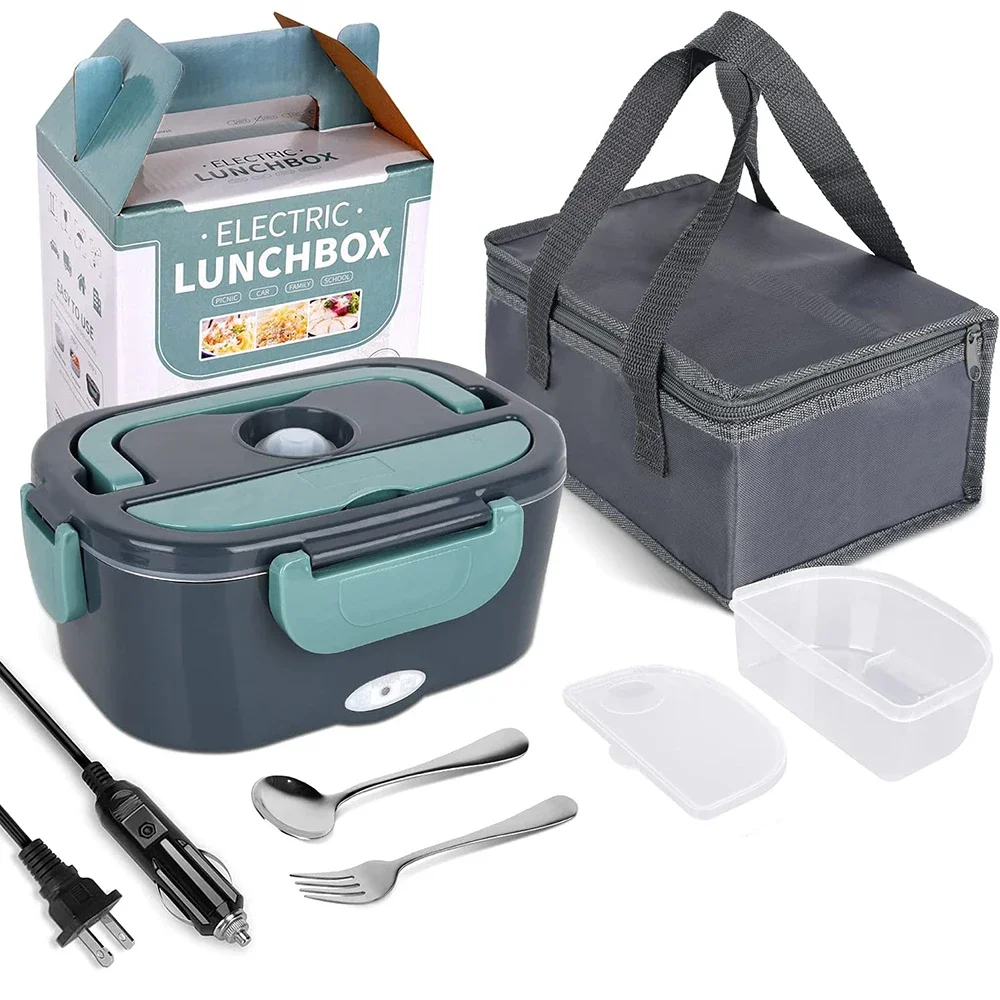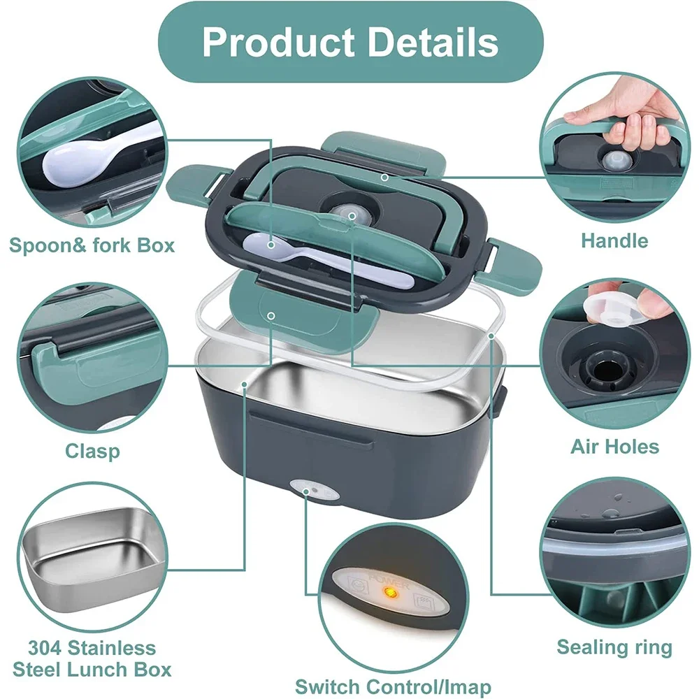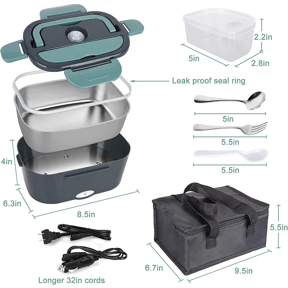 2-In-1 Electric Heating Lunch Box Portable Stainless Steel Liner Bento Lunchbox Food Container Bento Box for Car + Home 12V 110V