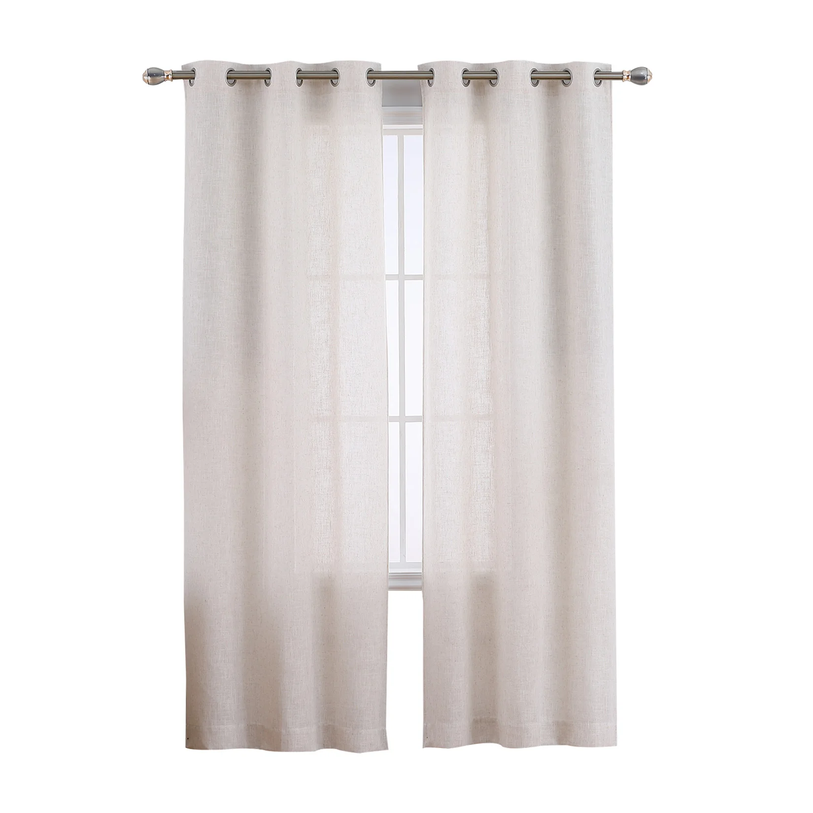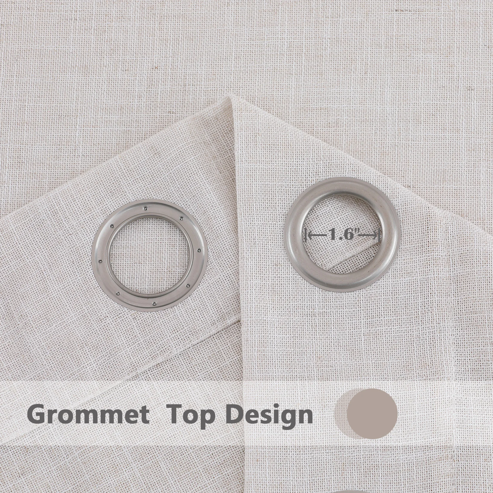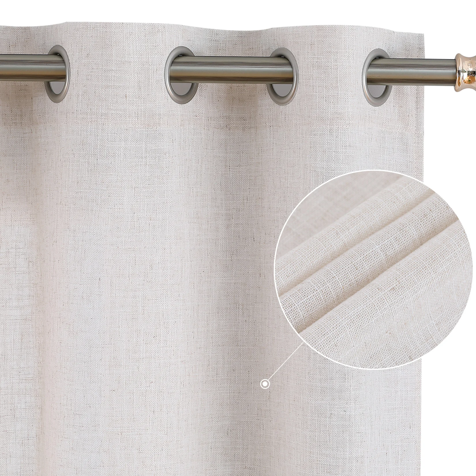 2 pcs Natural Linen Blend Textured Semi-Sheer Grommet Window Curtain Panels for Living Room Bedroom Curtains, 37 x 63 Inch