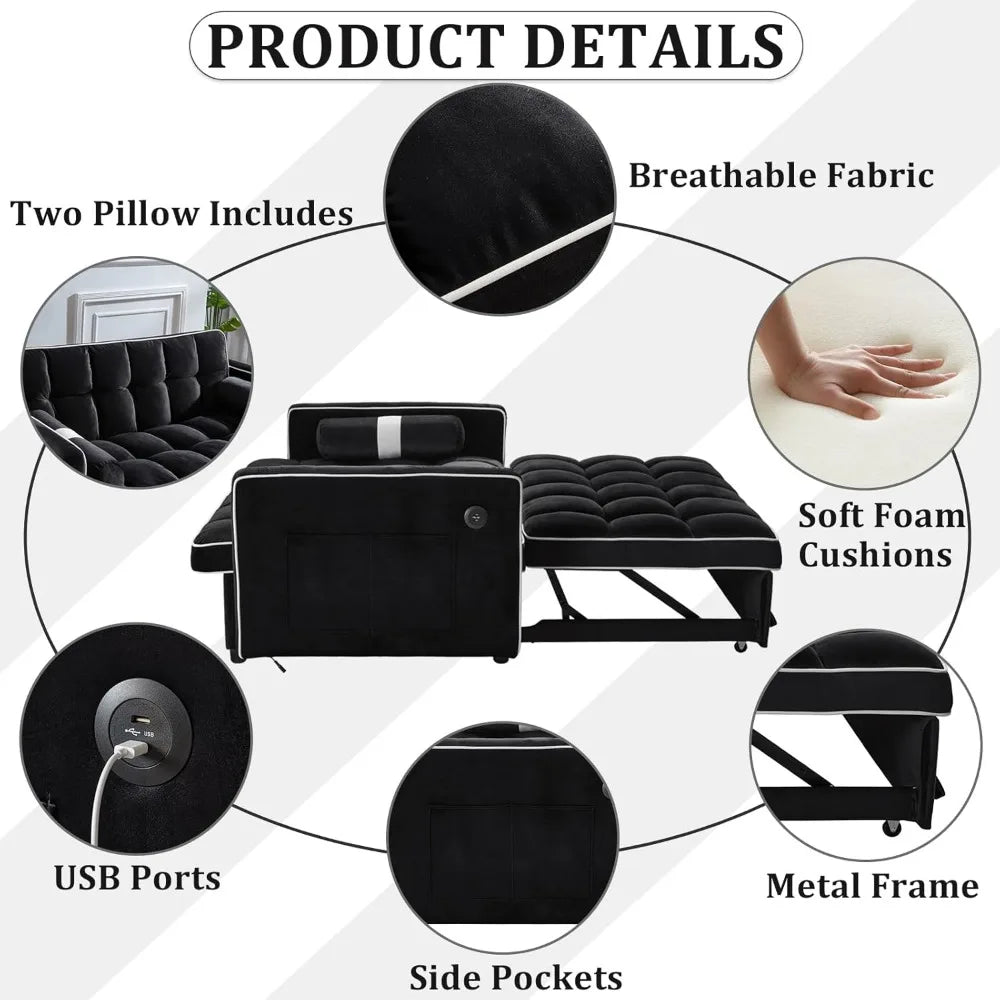 - 🔌【USB PORT & STORAGE POCKETS】Stay connected and organized with our convenient sofa features! Built-in USB charging ports allow you to power up your devices anytime, anywhere. Plus, handy side storage pockets of the sofabed keep essentials like remotes, phones, glasses, or books within easy reach for added convenience.