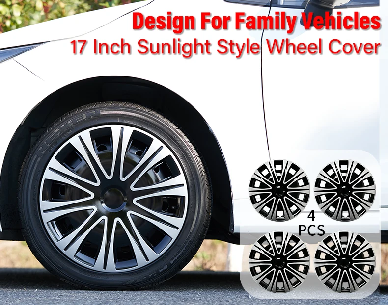 4PCS Hubcaps 17 Inch Full Coverage Sunlight Style Wheel Cover Cap Design for Most Car Iron Automobile Full Rim Cover Accessories