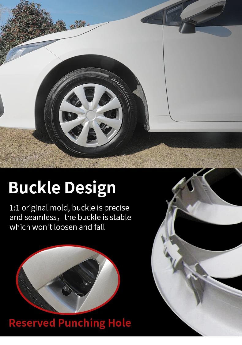 ✓Hassle-Free Installation - Buckle Design,1:1 original mold, buckle is precise and seamless, the buckle is stable which won't loosen and fall. Enjoy peace of mind knowing your car wheels are protected with ease.