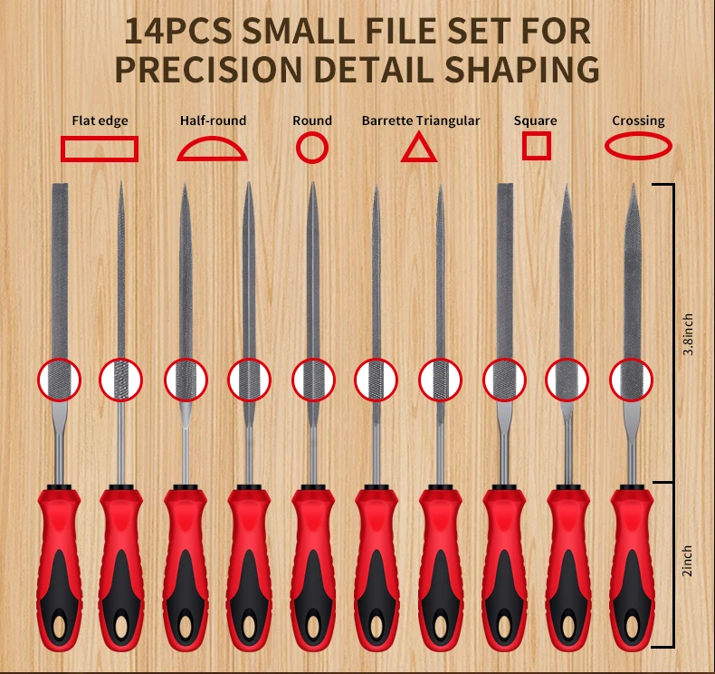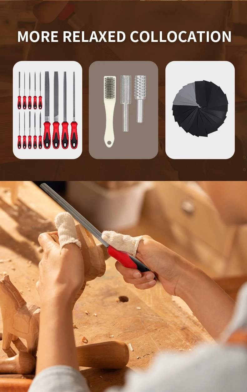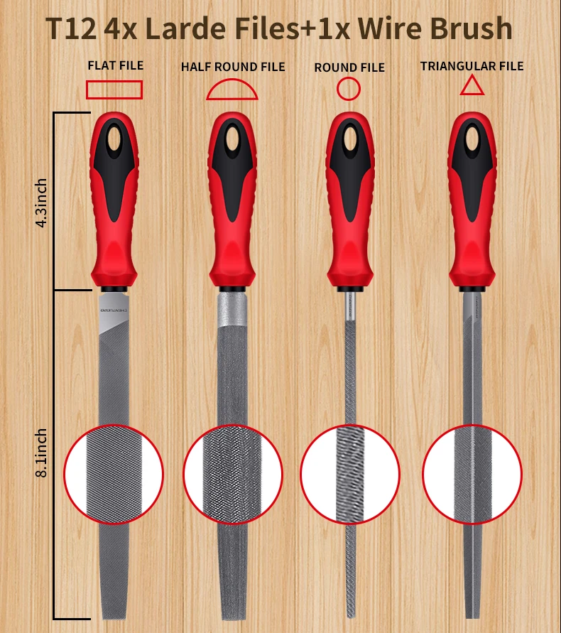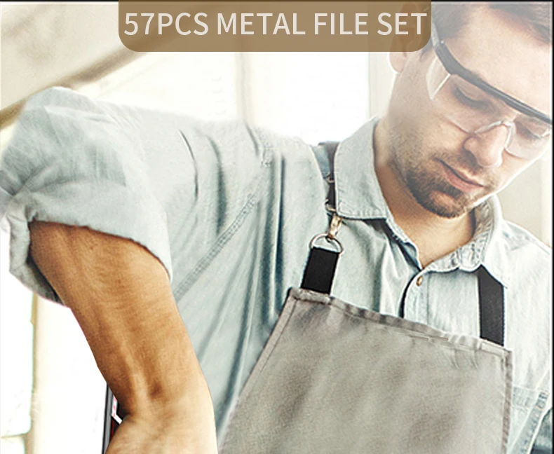 57Pcs Metal & Wood File Rasp Set,Grade T12 Forged Alloy Steel, Half-round/Round/Triangle/Flat 4pcs Large Tools, 14pcs Needle Fil