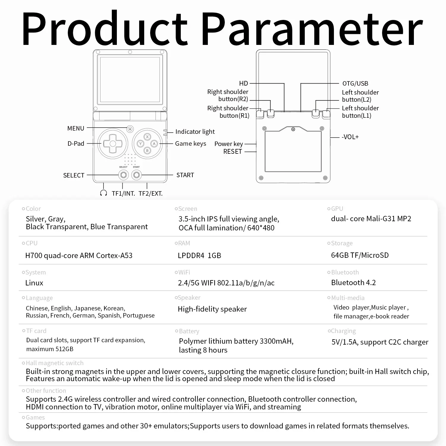 ANBERNIC RG35XXSP Flip Game Console 3.5'' IPS Screen Mini HDMI Output WiFi Bluetooth 4.2 E-book Linux Video Console Player Gifts