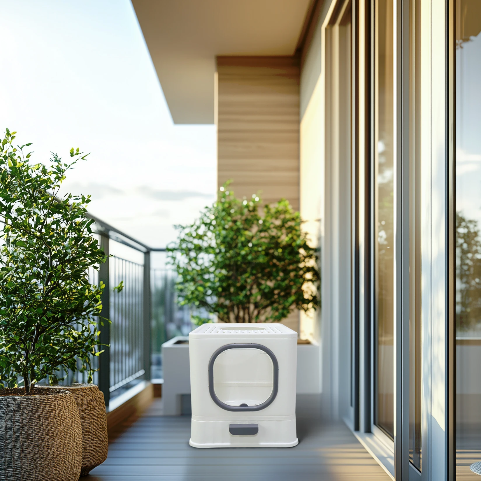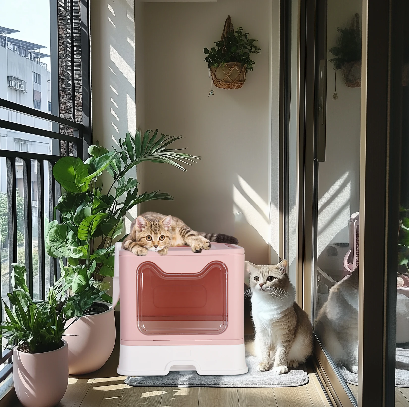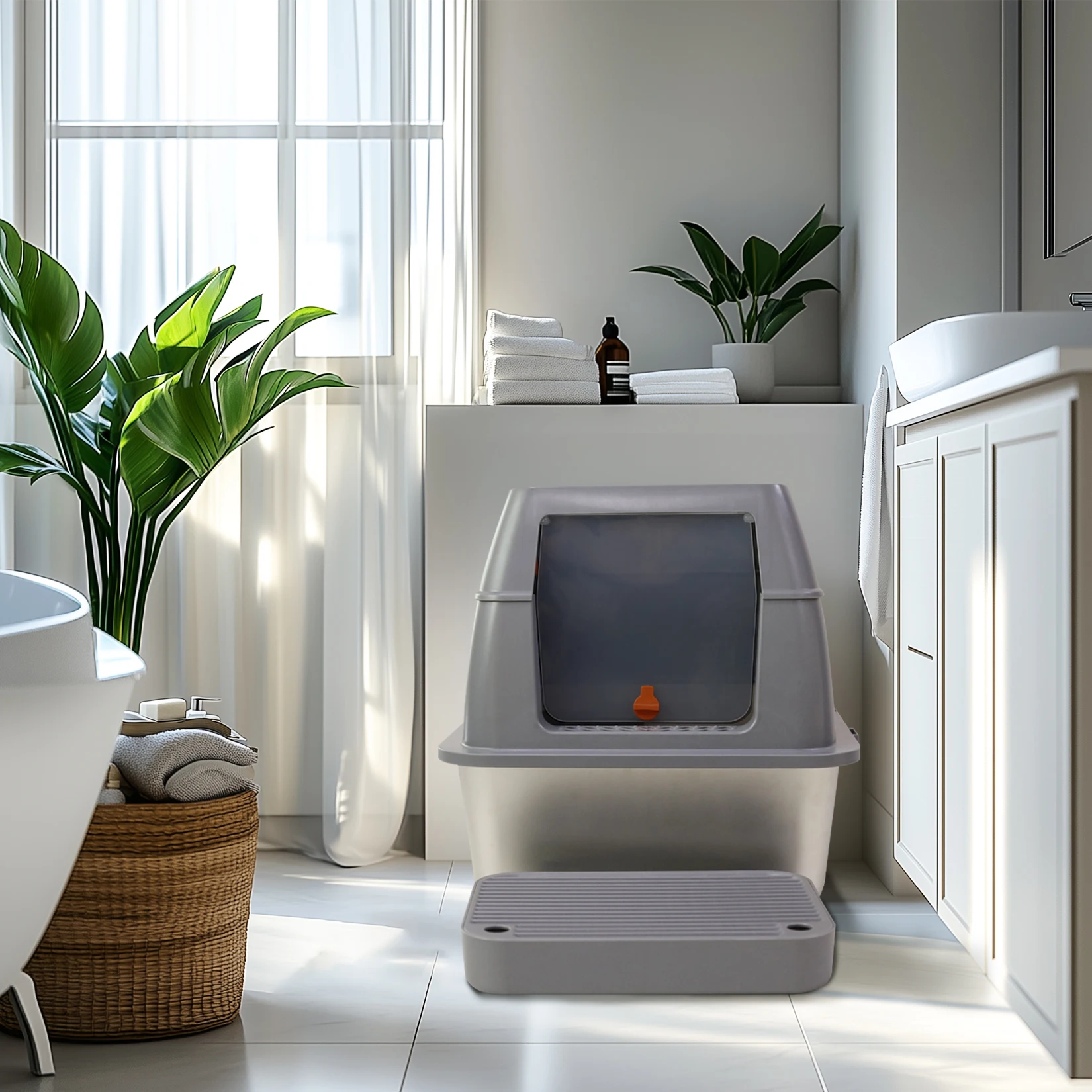 The sealed litter box effectively traps odors and features a convenient carry handle for flexible movement, perfect for all cat breeds