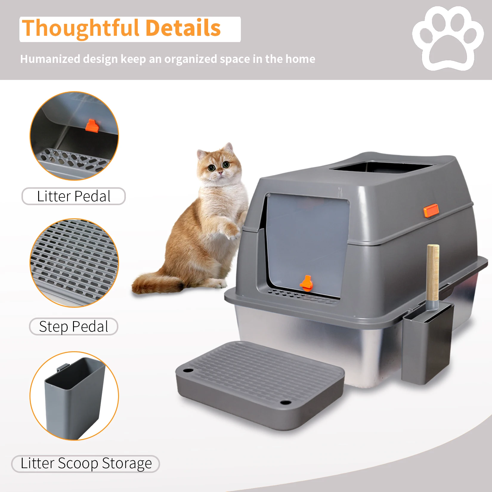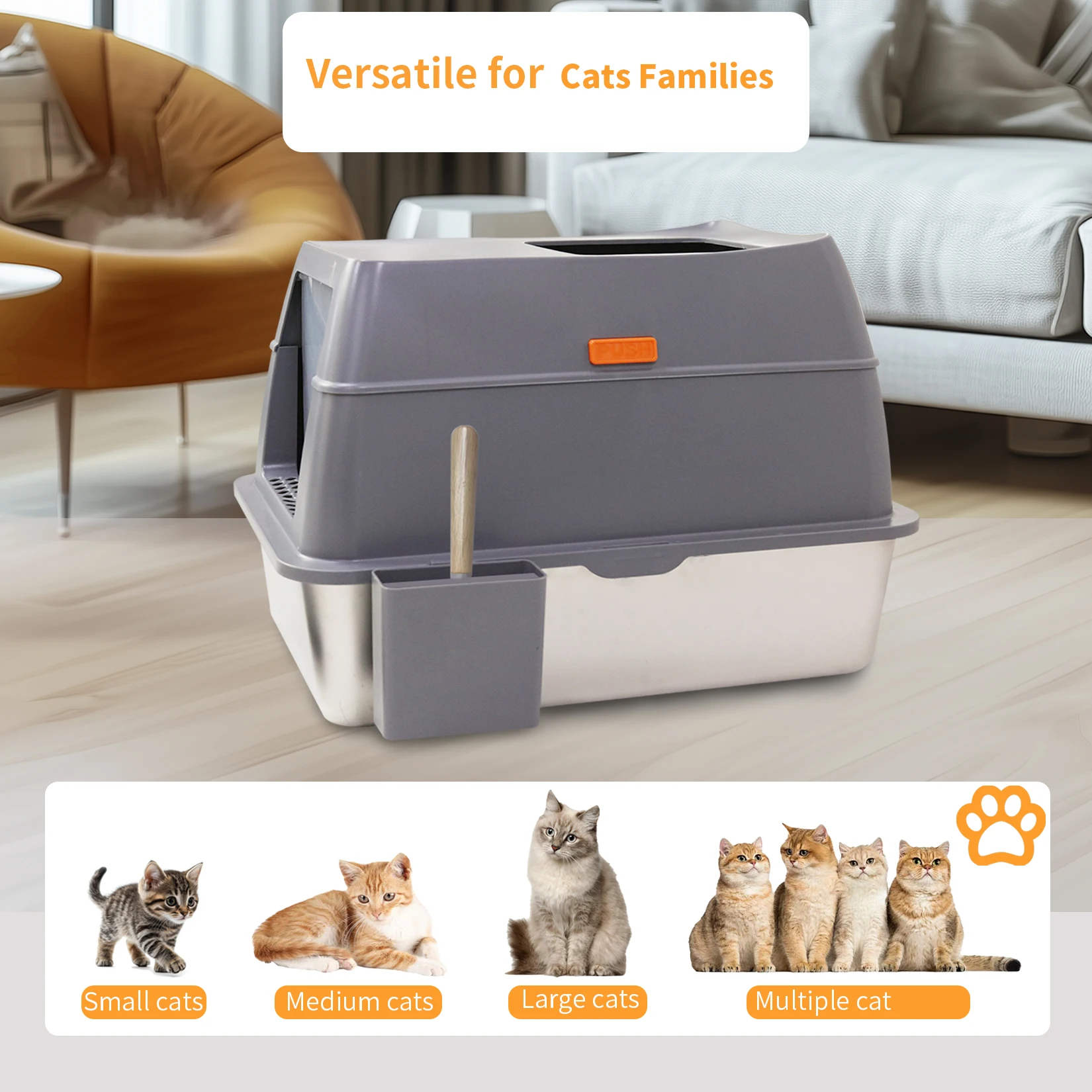 Bingopaw Cat Litter Box with Lid, Enclosed Potty, Large Top Entry Anti-Splashing Toilet, Easy to Clean Including Litter Scoop