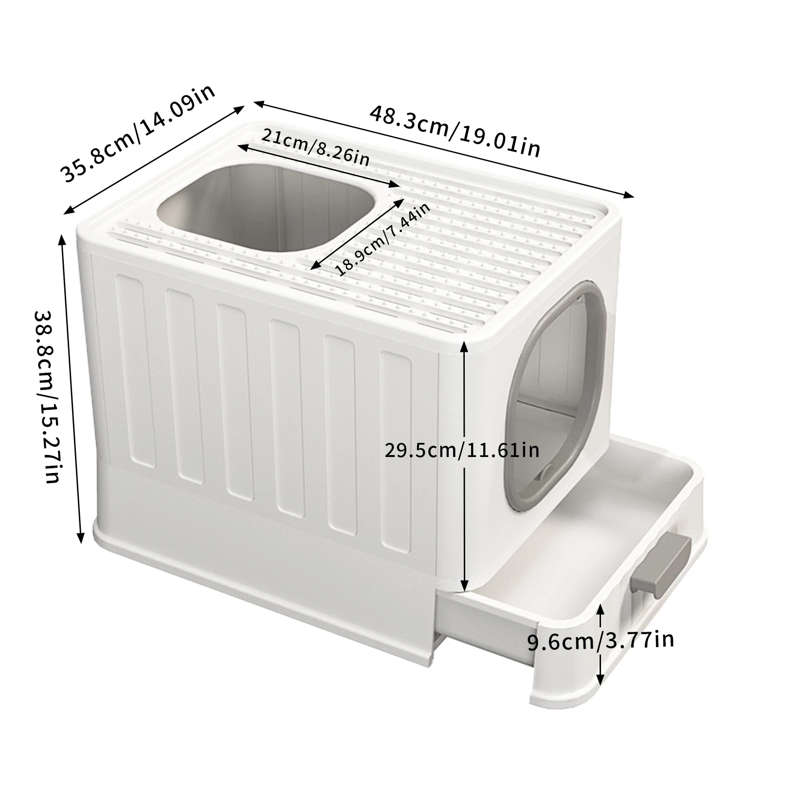 Designed for hassle-free maintenance, the removable drawer allows easy litter scooping and replacement while the foldable design enables fast storage