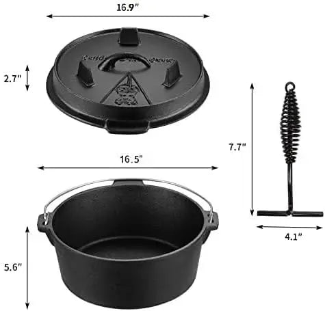 - Durable & Long-Lasting: Crafted from robust cast iron, this Dutch oven offers outstanding durability, ensuring it can withstand the rigors of outdoor cooking for years to come.