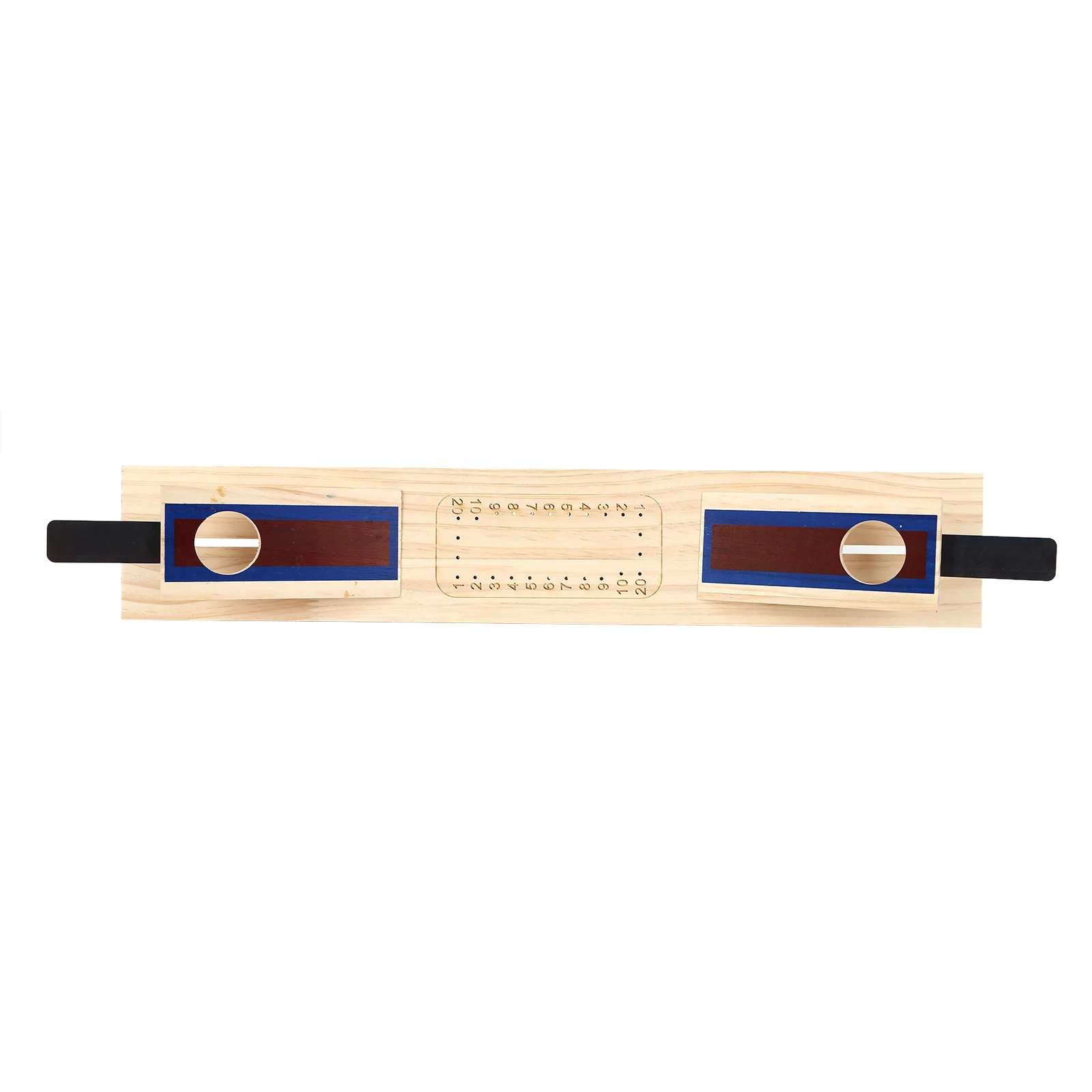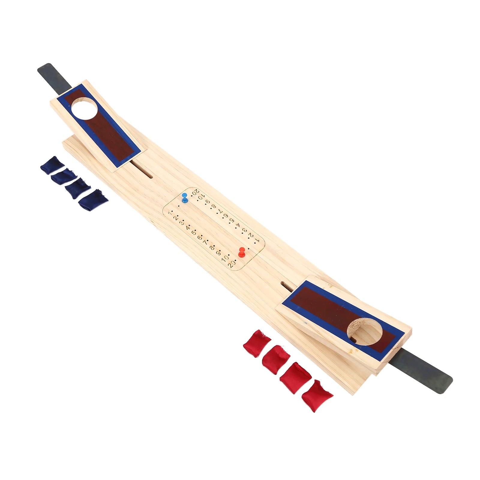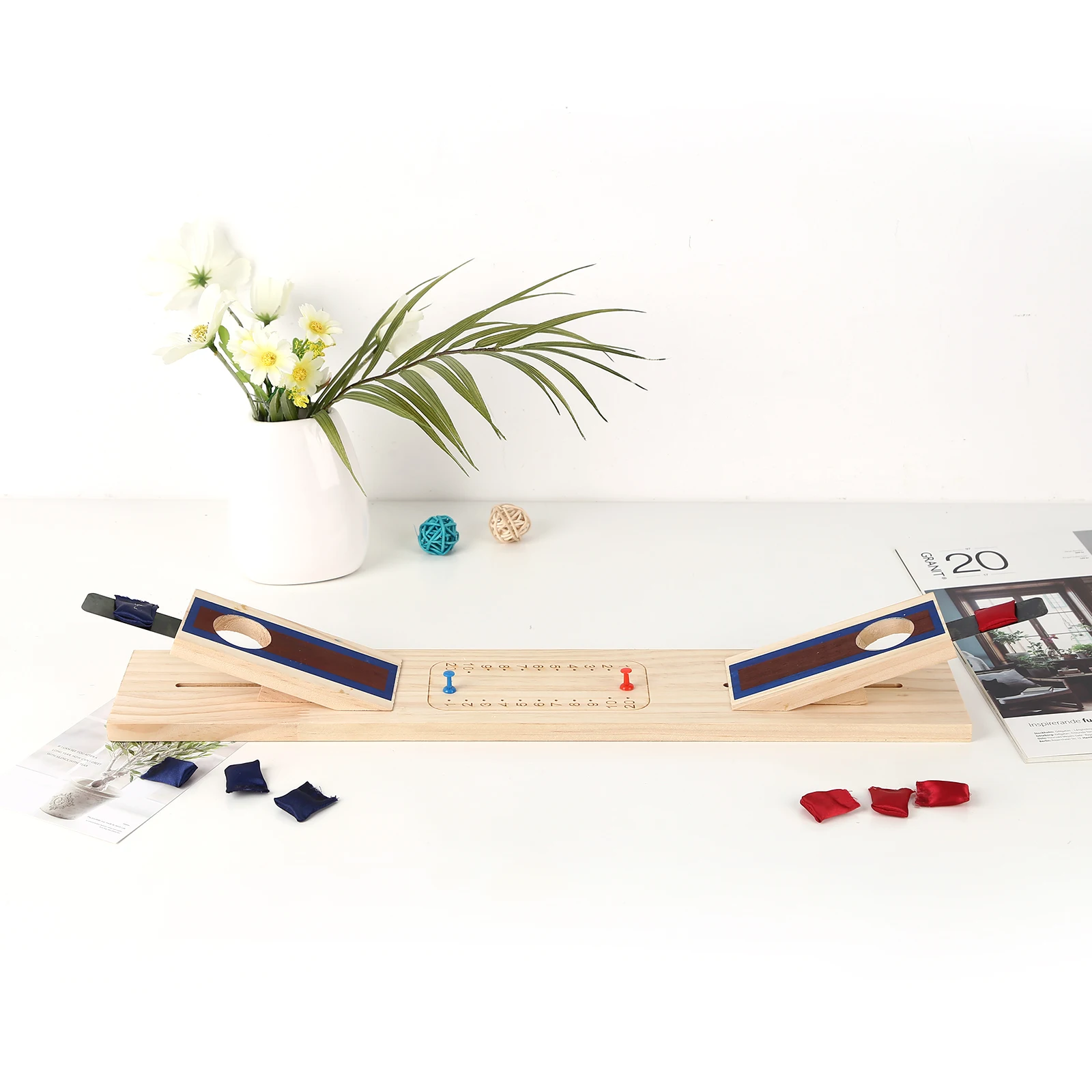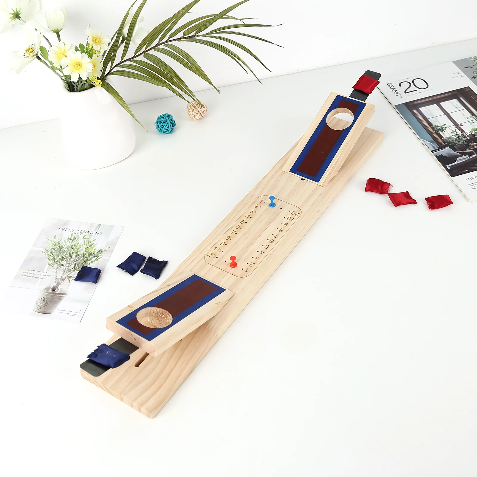 Classic Cornhole Set, Mini Portable Corn Hole Boards and 8 Bean Bags, Tabletop Toss Game for Outdoor Indoor Kids Adults Family Fun  Feature: Miniature design - The size is just right, and it can be played on the desktop or any place with small space but strong entertainment. The suit can be easily put into a backpack or handbag to join a party with friends. Sturdy material - The single contained board is made of strong MDF wood. This makes it enough to cope with daily competitions and travel. It also has an interesting football field design, which is sure to attract any sports fan. Fun for everyone - This mini bean bag set is a great way to introduce corn introduce games to children and adults. It teaches children the basic math and critical thinking for playing, keeping score, and developing motor skills. Easy to play - Big hole game includes 8 sandbags: 4 red and 4 blue. This makes it easy to play friendly matches and track scores and take turns. Bright colors are definitely suitable for any game room. Can play indoors. Your goal is to eject a small sandbag from the plastic fins into the opponent's hole. The shot that goes straight into the hole is worth three points, and the bean bag on the playing field is worth one point. When you (or your team) reach 21 points, the victory belongs to you. The solid wood board (with felt feet) has an integrated scorer and adjustable targets, so you can modify the difficulty level of the game according to your skills. Ideal for raining with friends or participating in epic championship-style events. Specification: Material: MDF wood and cloth Circuit board size: 50*9*3cm Includes 8 bean bags: 4 red and 4 blue. Note: Due to the different monitor and light effect, the actual color of the item might be slightly different from the color showed on the pictures. Thank you! Please allow 1-2cm measuring deviation due to manual measurement.