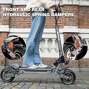 - ⛷【STABLE & COMFORT RIDING】 --- iENYRID scooter electric for adults with spring damping on the front wheel, suspension damping on the rear wheel and 10" off-road tyres, those great properties provide an excellent riding. This comfortable electric kick scooter gives you an additional riding option. This foldable scooter is easy to carry and store