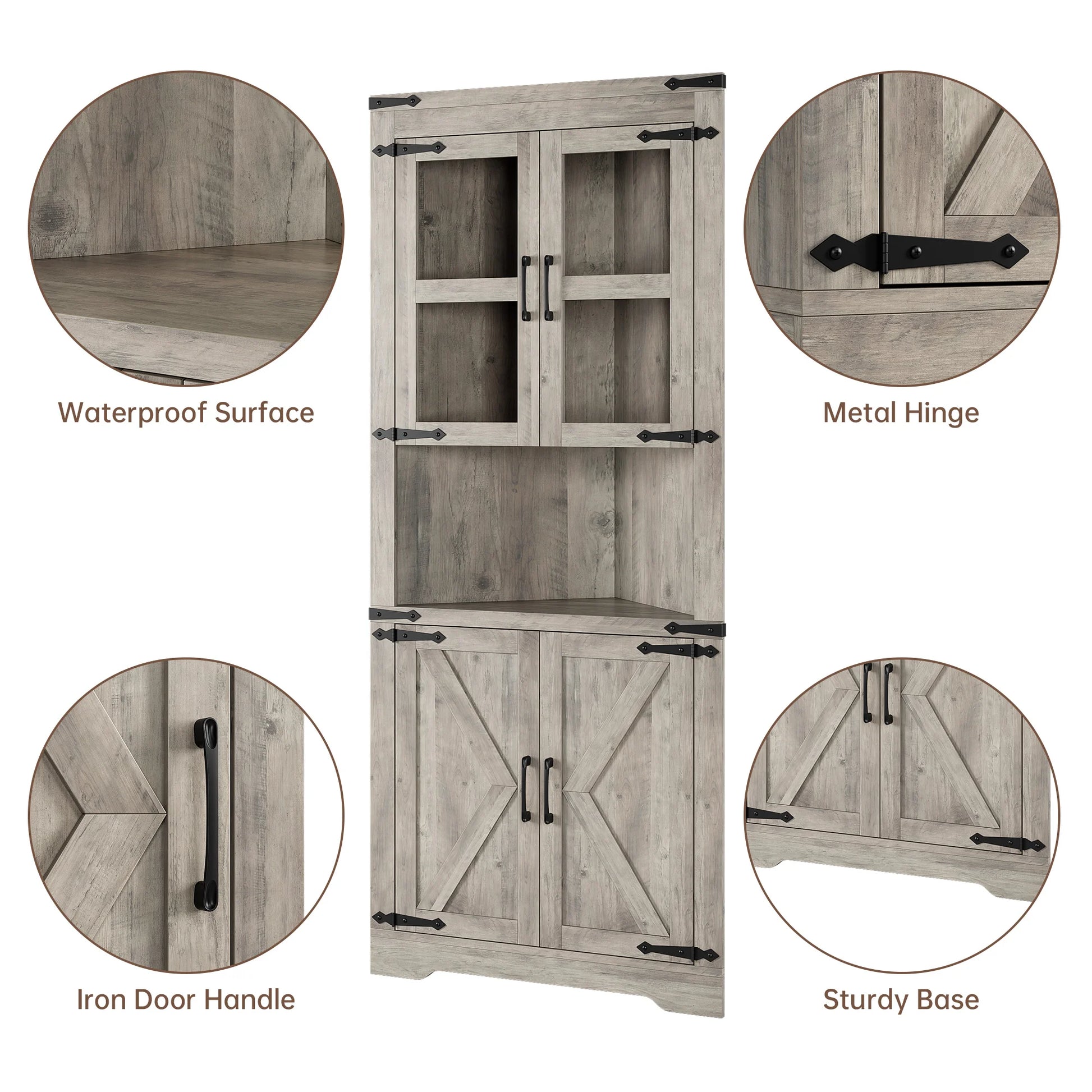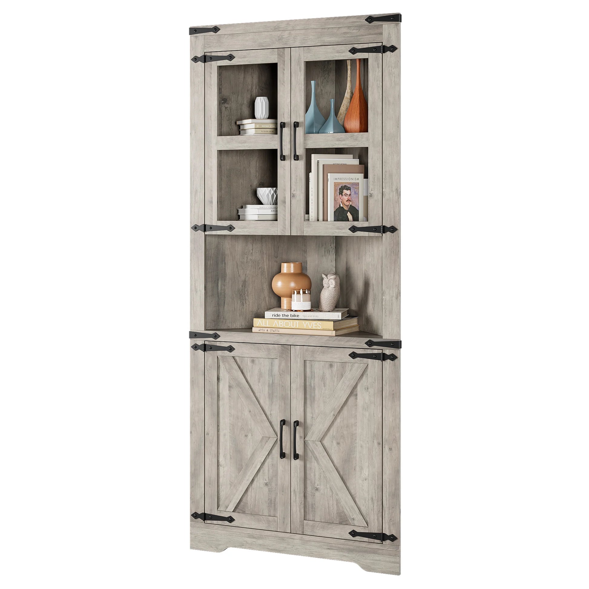 Farmhouse Corner Cabinet, Tall Corner Cabinet with Barn Door & Adjustable Shelves, Corner Storage Cabinet for Living Room