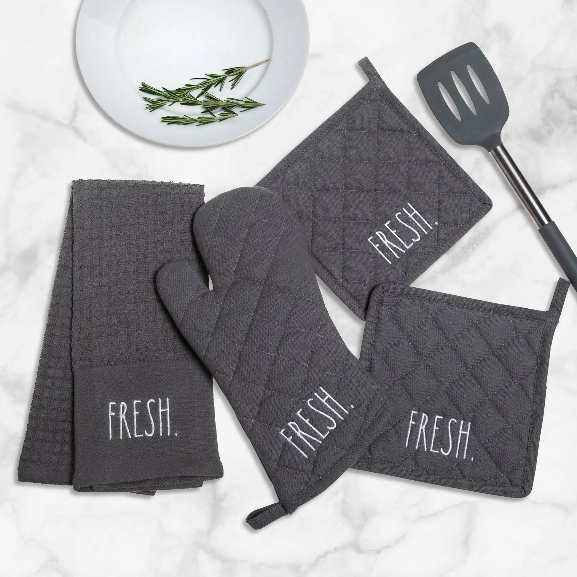 Fresh Kitchen Towel, Oven Mitt & Potholder Kitchen Set, Gray