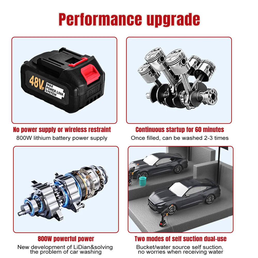 2.The portable pressure cleaner is powered by a high-performance battery that provides long-lasting power and reliable performance. Rechargeable and compatible with a wide range of power tools, this battery allows you to use the pressure washer for up to 30 minutes on a single charge.