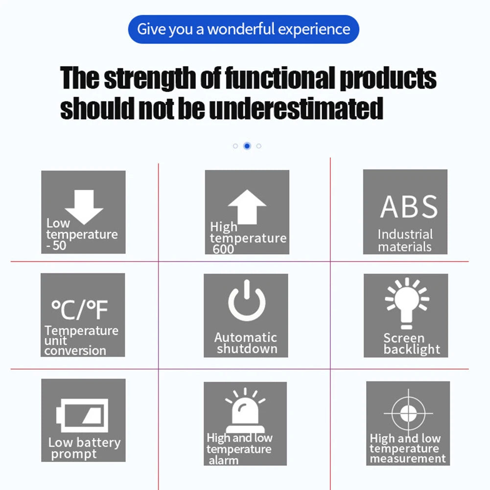 - Convenient Portability: Its compact and lightweight design makes this infrared thermometer easy to carry, suitable for various applications from kitchens to industrial settings.