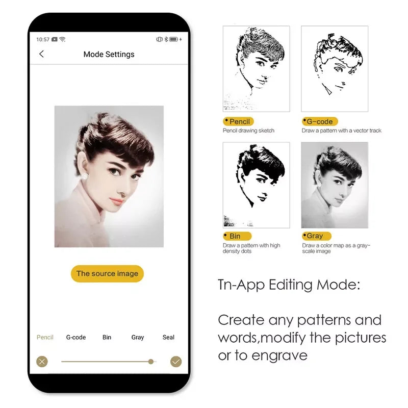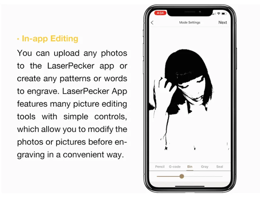 . Connect LaserPecker Pro with LaserPecker app,choose or upload any pattern in-app and edit it with user-friendly