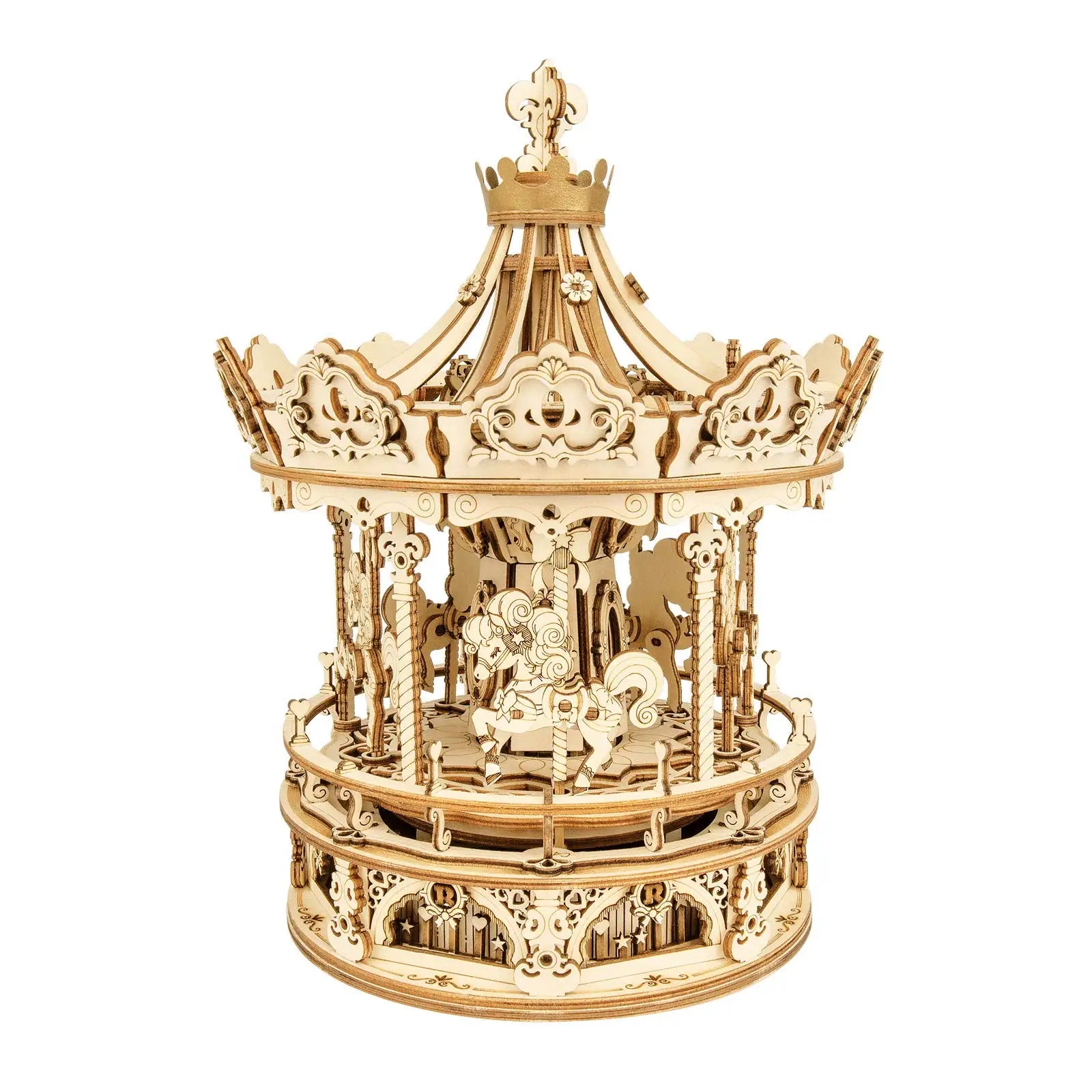 Robotime 3D Wooden Puzzle 336pcs Rotatable DIY Romantic Carousel Game Gift for Children Kids Adult AMK62 Assembly Music Box Toy