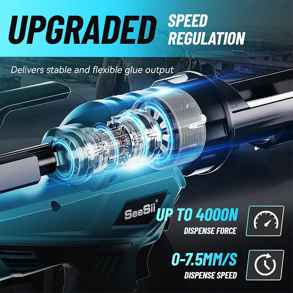 Seesii Cordless Caulking Gun [2024 Upgraded], 12V Battery Caulk Gun w/2 x 2.0AH Battery & Charger,Electric Caulking Gun w/LED Light,6 Adjustable Speeds Adhesive Gun Kit for Filling,Sealing