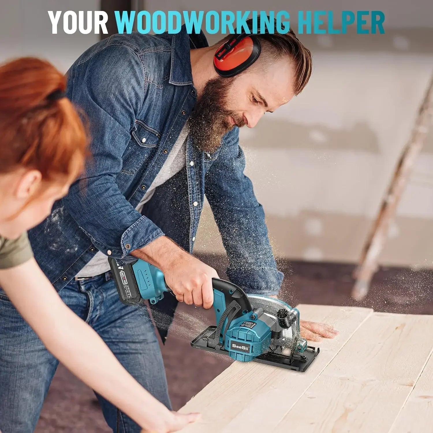 - Comfortable, One-Handed Operation: The ergonomic, lightweight design of the cordless circular saw ensures you can cut in tight spaces or work overhead without straining your arm or wrist. Perfect for quick DIY projects or extended use