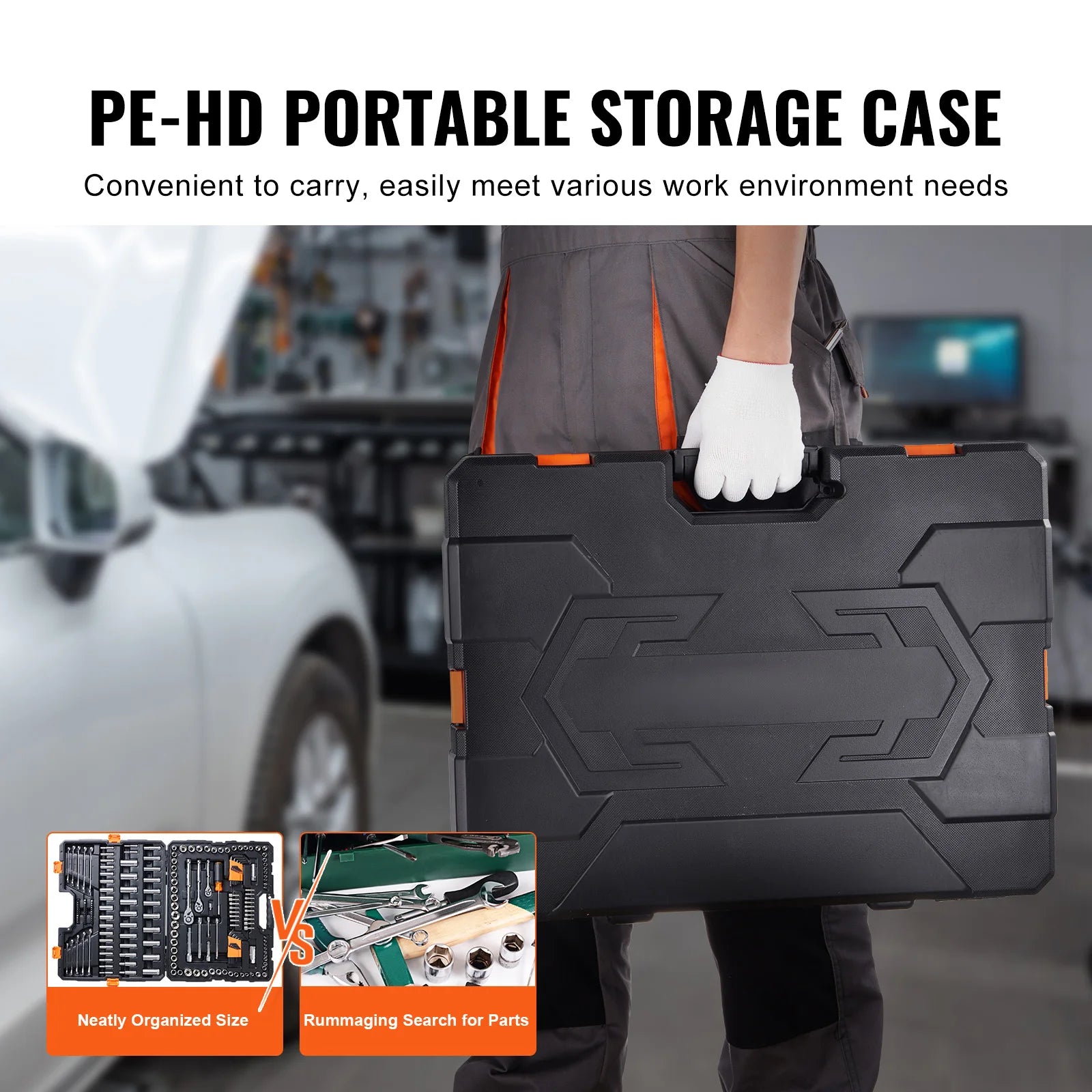 - PE-HD Portable Storage Case: This tool set mechanics kit features a lightweight and portable design for easy carrying and storage. Neat compartments ensure you always grab the right piece for the job. No more hunting, just a toolbox that gets you right into the action, wherever you are.