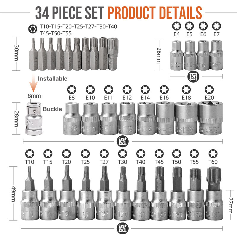 Model Number: 34 PCS Torx Star Socket and Bit Set