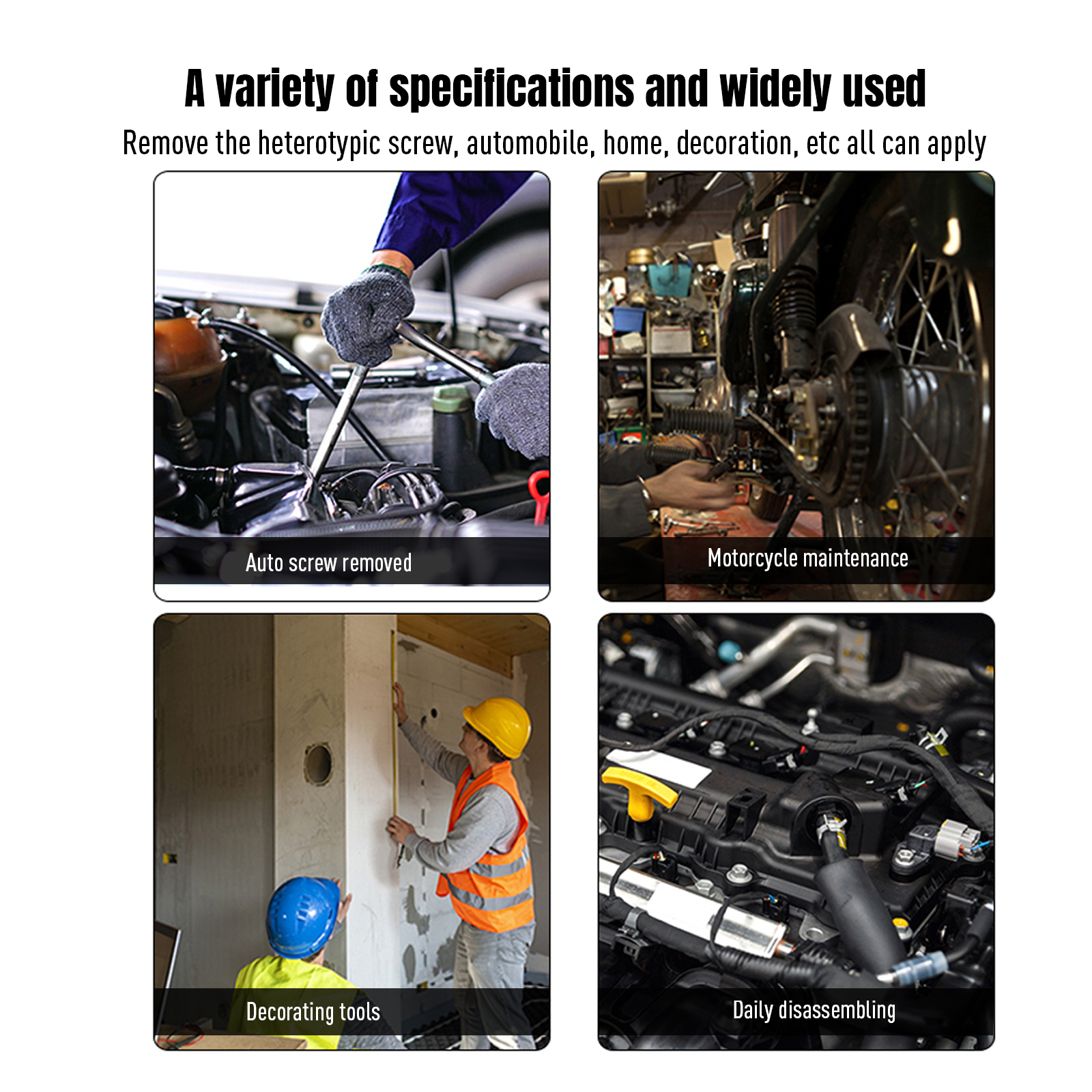 3.Made of high quality chrome vanadium steel, it is strong and super durable. Combined with chrome vanadium steel sockets, it can provide greater turning power for superior torqu