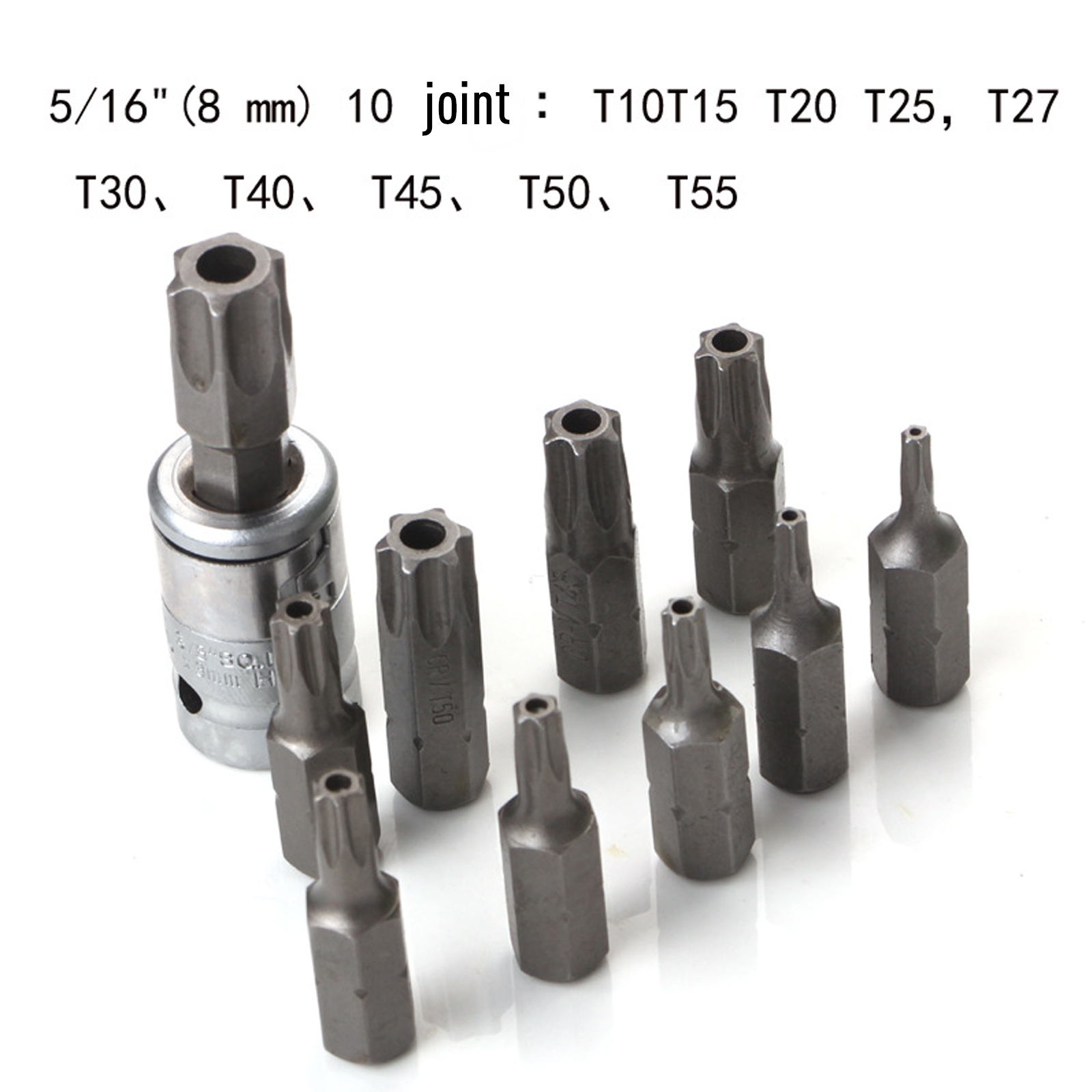 10Pcs 5/16'' Bits: T10,15,20,25,27,30,40,45,50,55