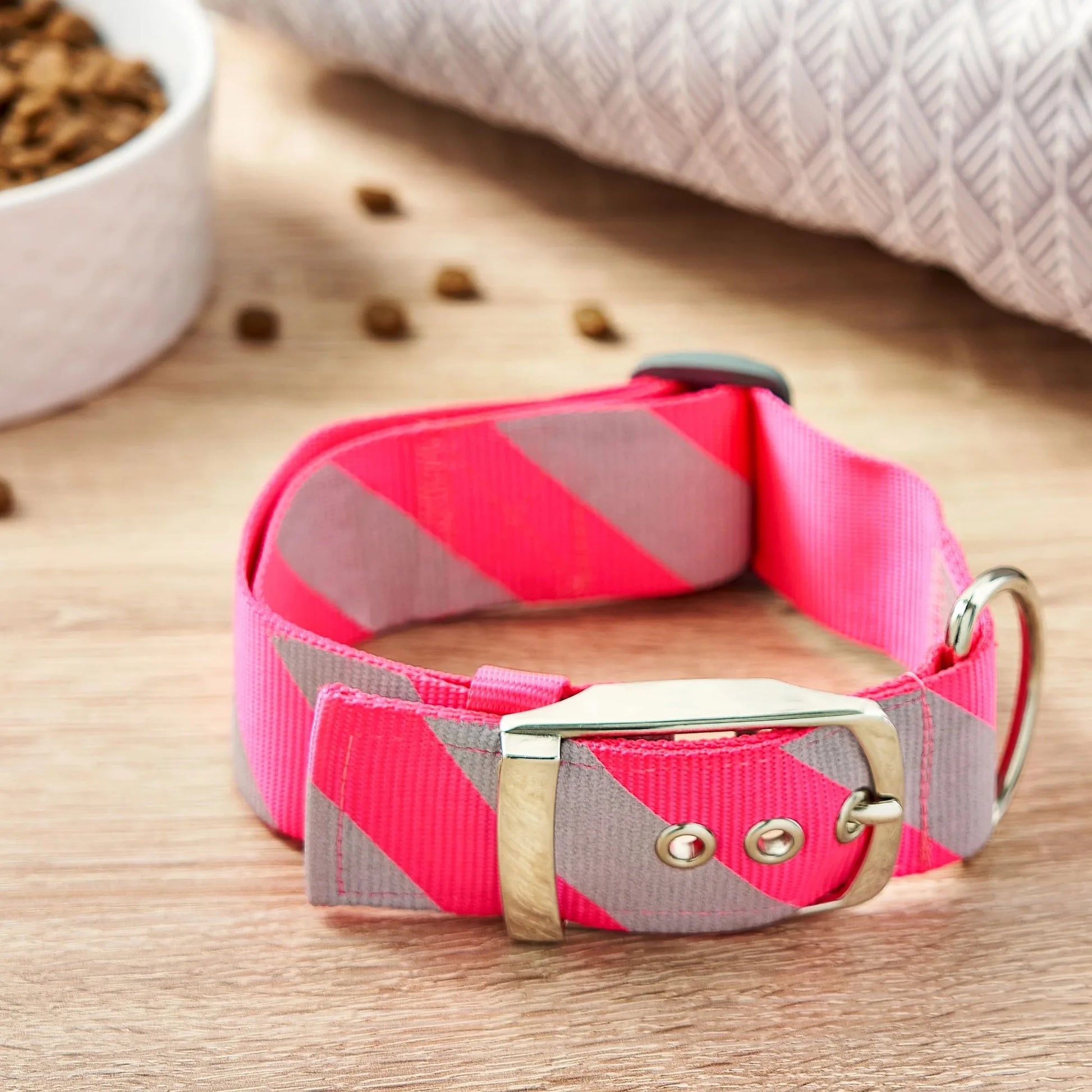 Vibrant Life Diagonal Stripe Extra Wide Adjustable Reflective Collar for Dogs, Pink & Gray, Large