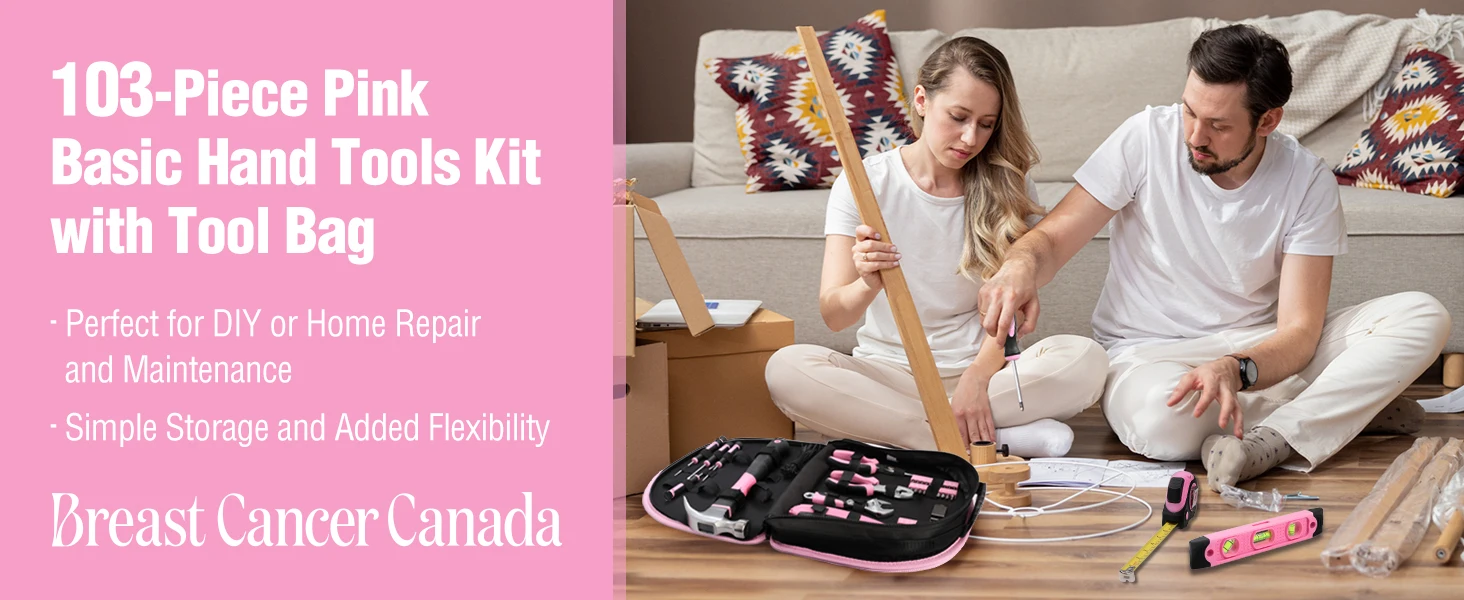 WORKPRO Pink Tool Kit - 236 Pieces Pink Tool Set with Easy Carrying Round Pouch, Household Tool Kit Perfect for DIY, Home Mainte